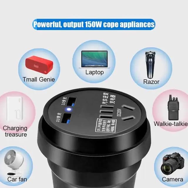 "ميزة التحديد التلقائي للجهد! المحول بيشتغل تلقائيًا سواء كنت في سيارة عادية أو شاحنة."