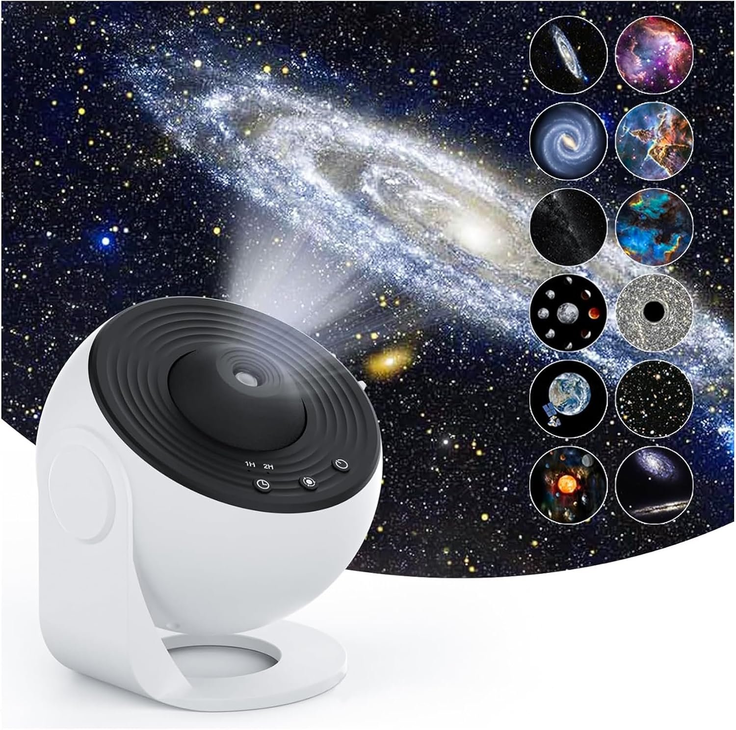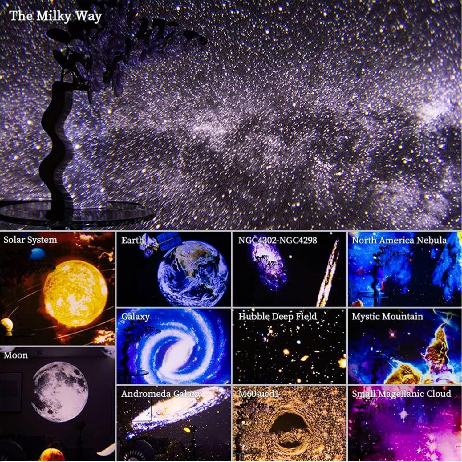 الجهاز بيجي مع 12 قطعة عرض مختلفة، وكل قطعة بتاخدك في رحلة جديدة داخل أعماق الكون. من النظام الشمسي والقمر، لمجرة أندروميدا وسحابة ماجلان، هتعيش تجربة فريدة مع كل شكل.  كل ليلة عندك فرصة تشوف مشهد مختلف من روائع الفضاء