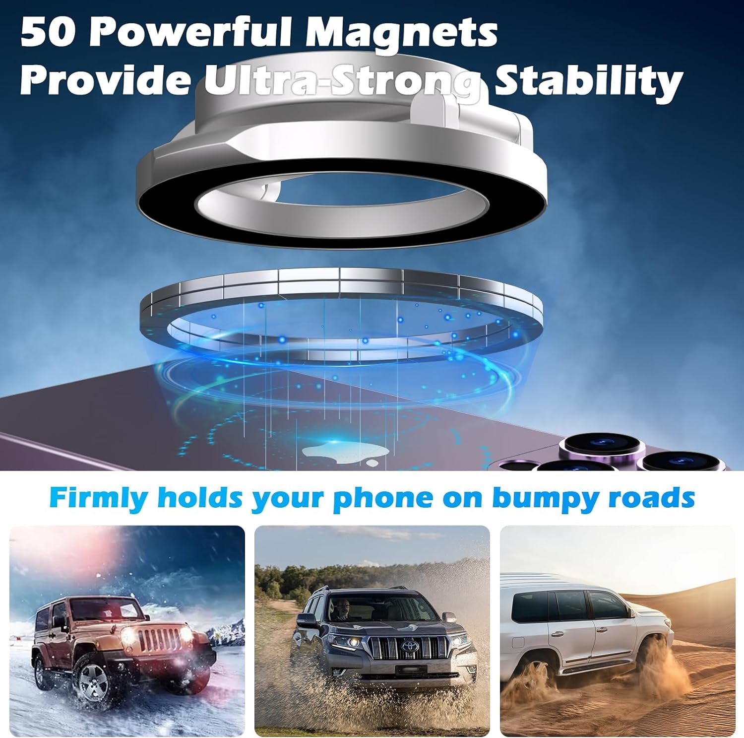 • مغناطيس قوي: هيمسك موبايلك بثبات، حتى على المطبات والسرعات العالية