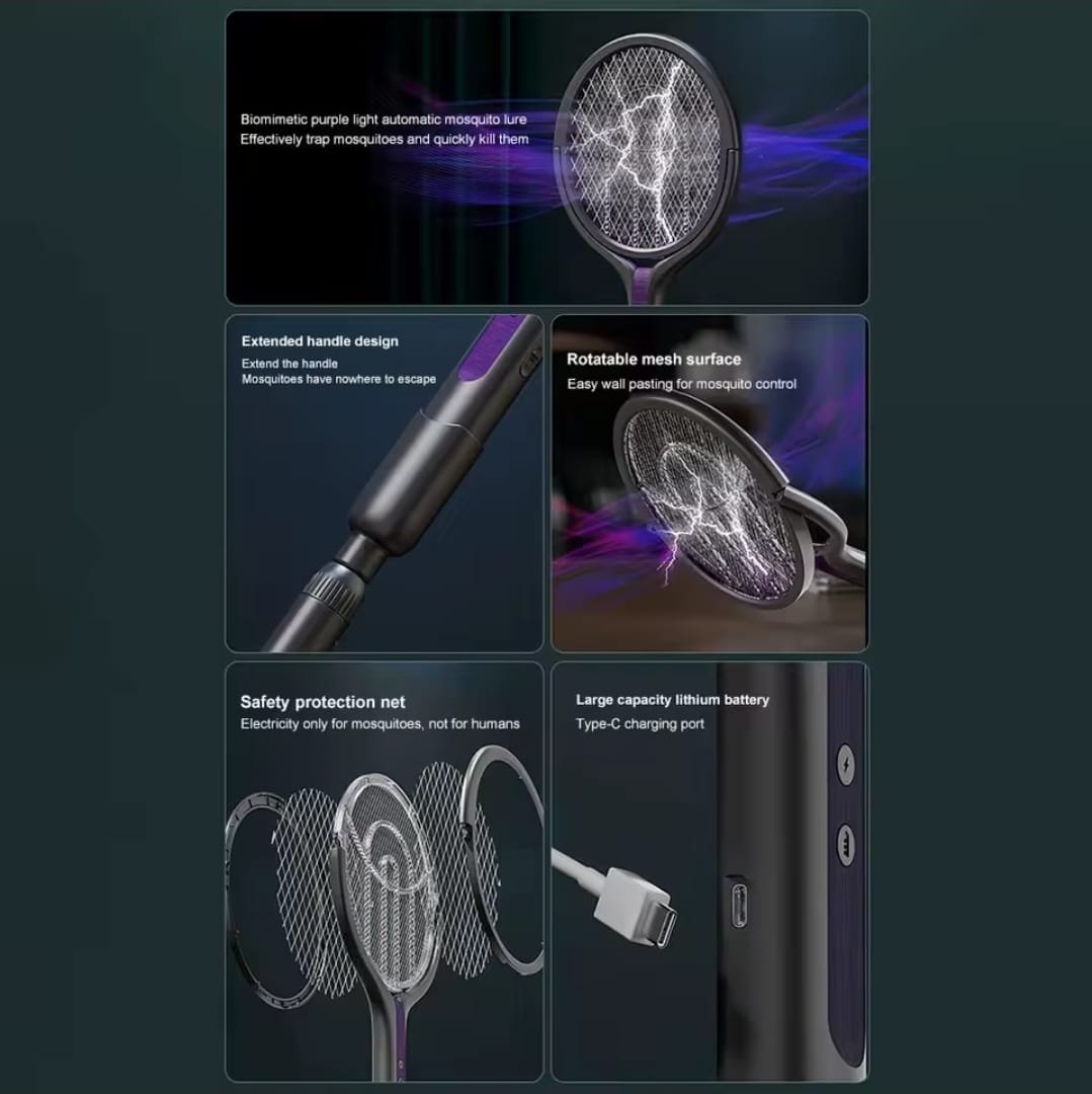 مضرب الناموس الكهربائي الذكي بذراع تلسكوبي