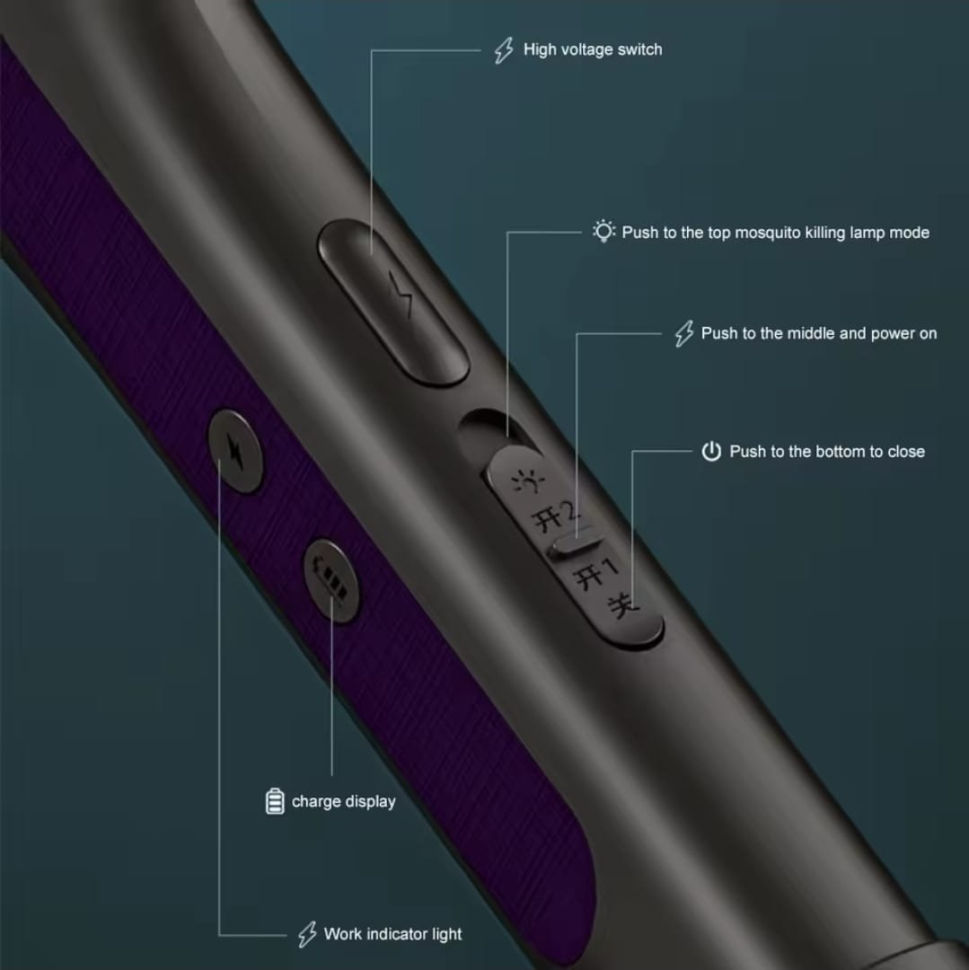 - قوة صعق كهربائية عالية ⚡: صعقة فورية تقضي على الناموس من أول لمسة (وكمان الذباب والحشرات الطائرة).